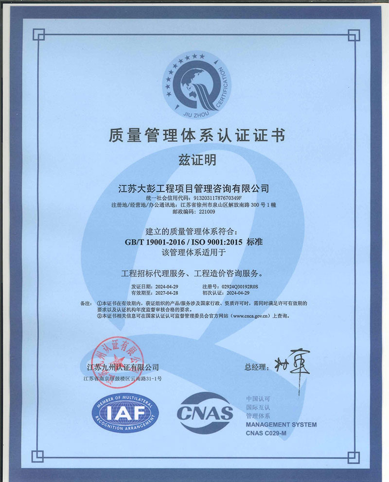 發(fā)布時間: 2025/5/28 9:29:09 被閱覽數(shù): 86 次 來源: 江蘇大彭工程項目管理咨詢有限公司 |